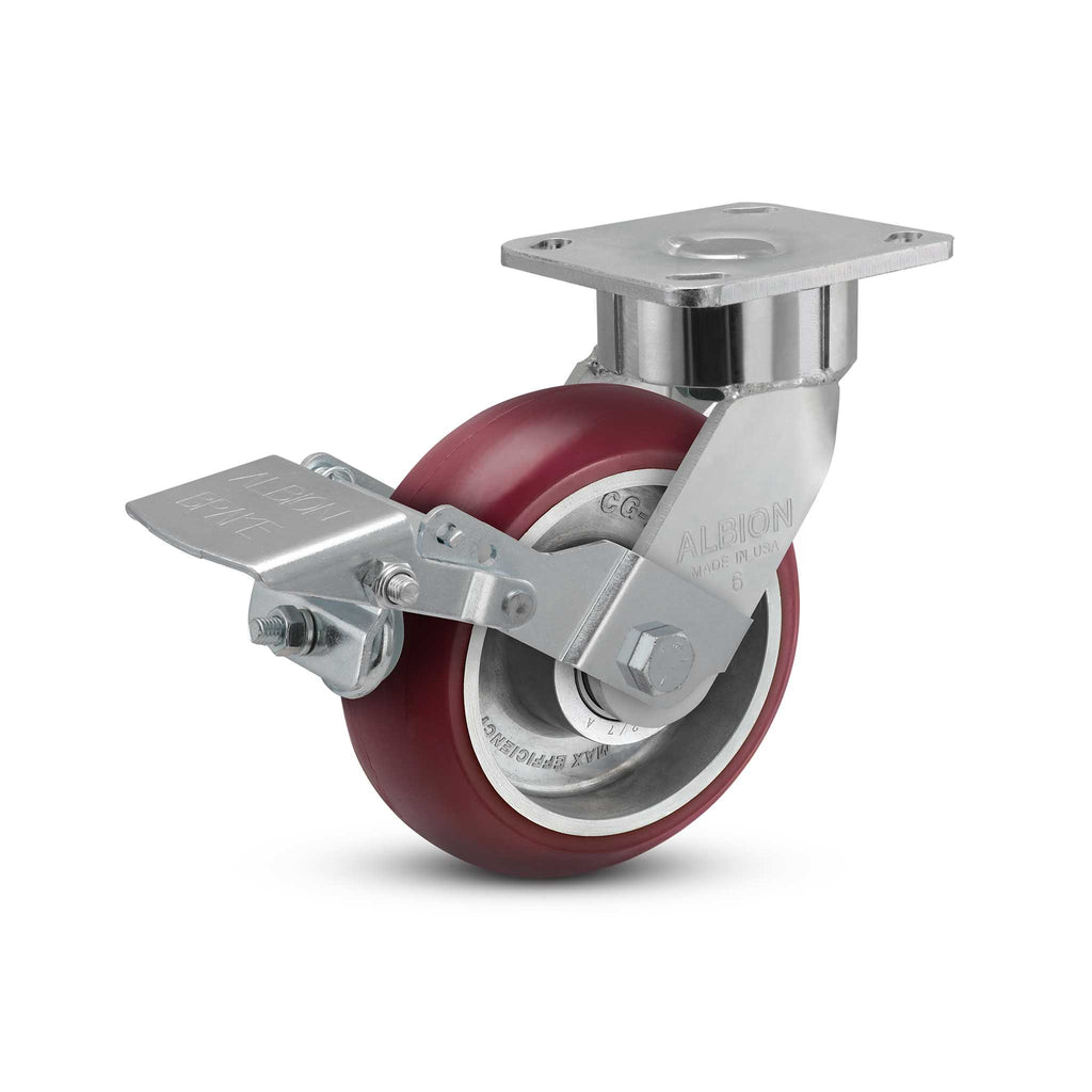 6"x2" USA Ergonomic Brake Caster with MAX-Efficiency Wheel and 4"x4.5" Plate