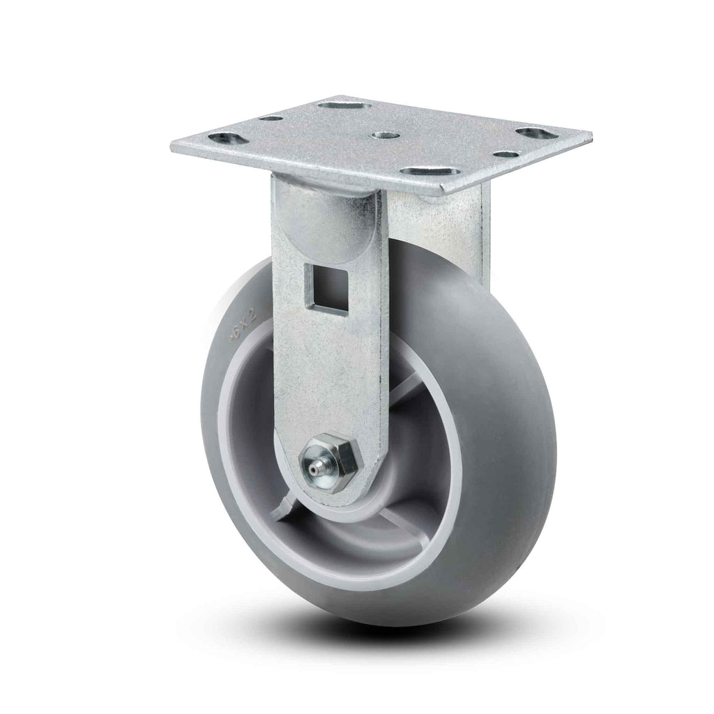 6"x2" Thermo-Rubber (Donut) Roller Bearing Rigid Caster with 4"x4.5" Plate