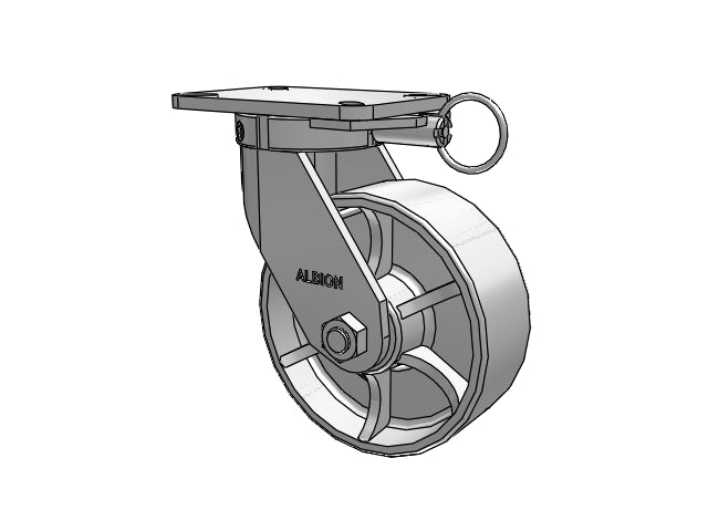 Kingpinless 8"x3" Cast Iron Wheel Caster with 7.25"x5.25" Plate & Swivel Lock
