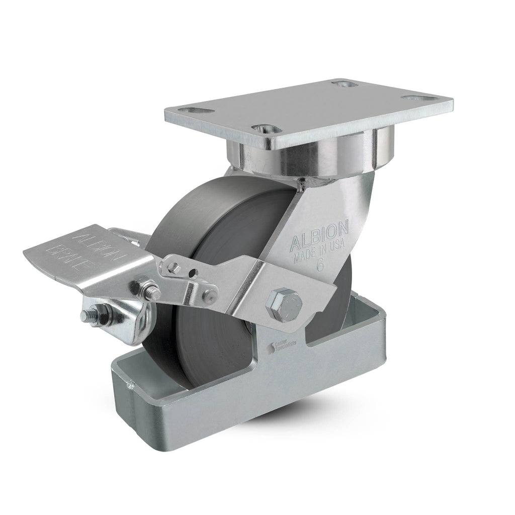 The Albion 38NX06228SFBKTO swivel caster is built to improve workplace safety while delivering unmatched mobility for heavy-duty equipment—and is the ideal upgrade when replacing forged steel, cast iron, or other metal wheels. This ergonomic and completely maintenance-free caster is ANSI ICWM tested and backed by a 3-year premium warranty, ensuring long-lasting performance in demanding industrial environments.