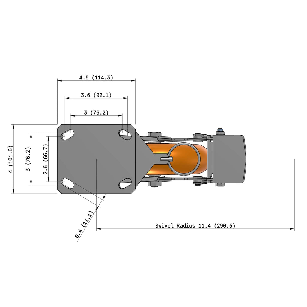 Increases swivel offset (the horizontal distance from the top plate center to the axle) to reduce push/pull forces during alignment and travel, enabling safer, smoother, and quieter operation.