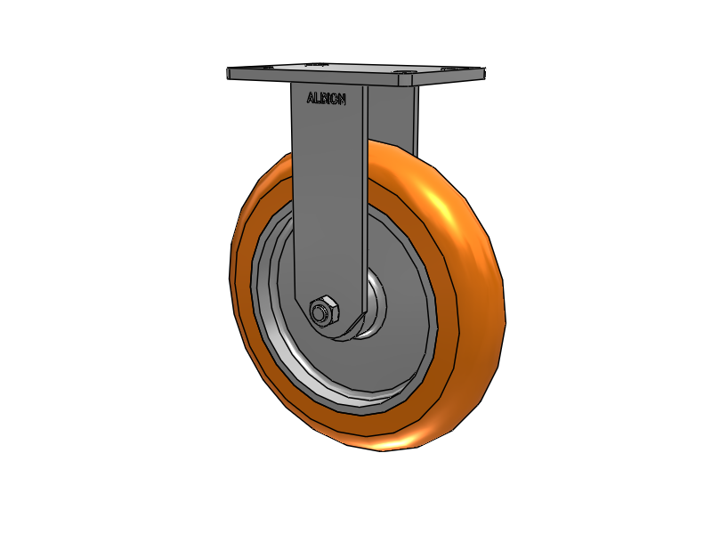 10"x2" USA Ergonomic Rigid Caster with MAX-Efficiency Orange Wheel and 6.25"x4.5" Plate