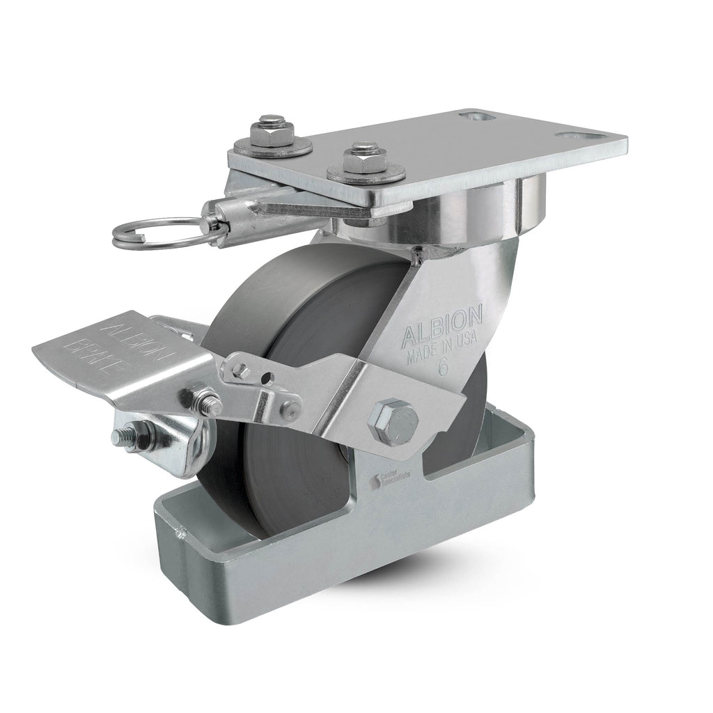 The Albion 38NX06228SLFBKTO swivel caster is built to improve workplace safety while delivering unmatched mobility for heavy-duty equipment and is the ideal upgrade when utilizing tough forged steel, cast iron, or other metal wheels. This ergonomic and completely maintenance-free caster is ANSI ICWM tested and backed by a 3-year premium warranty, ensuring lasting performance in the most demanding industrial environments.
