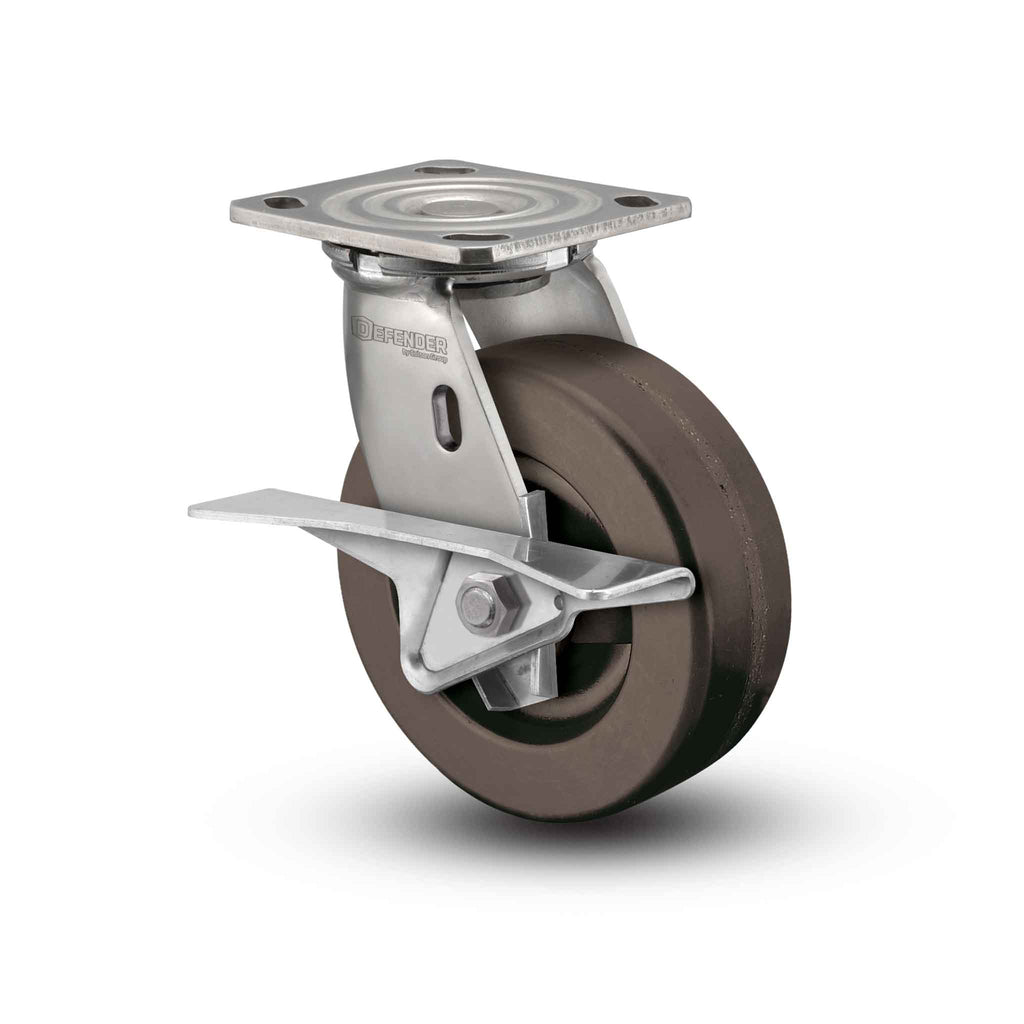 Stainless 5"x2" Hi-Temp Phenolic Roller Bearing CAM-Brake Caster with 4"x4.5" Plate