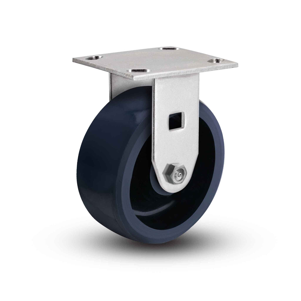 The Pemco SSER4X2KWLB rigid caster features a 4" x 2" Solid Polyurethane K wheel and a 4" x 4-1/2" Top Plate, capable of a 700 lb. capacity per caster. Complete caster specifications and downloadable CAD model are provided below. E-line Stainless Steel casters are ideal for harsh environments where frequent wash downs, chemicals, and other corrosive elements cause zinc-plated casters to rust or corrode. Featuring a more economical construction than our premium Defender D4 Series, this series has become a favorite entry-level stainless steel solution for many OEMs, fabricators, and caster replacement customers needing to prevent corrosion and rust. If you need more capacity or are dealing with more rugged applications, be sure to check out our stainless steel Defender D4 Series, 120 Kingpinless Series, or ultra-heavy duty 330 Kingpinless Series. E-line Stainless Steel features: