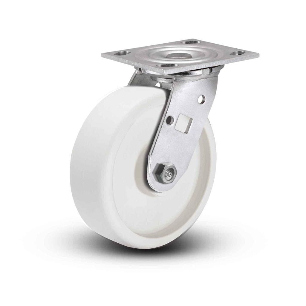 The Pemco SSES6X2RETB swivel caster features a 6" x 2" RETORT Polypropylene wheel and a 4" x 4-1/2" Top Plate, capable of a 700 lb. capacity per caster. Complete caster specifications and downloadable CAD model are provided below. E-line Stainless Steel casters are ideal for harsh environments where frequent wash downs, chemicals, and other corrosive elements cause zinc-plated casters to rust or corrode. Featuring a more economical construction than our premium Defender D4 Series, this series has become a favorite entry-level stainless steel solution for many OEMs, fabricators, and caster replacement customers needing to prevent corrosion and rust. If you need more capacity or are dealing with more rugged applications, be sure to check out our stainless steel Defender D4 Series, 120 Kingpinless Series, or ultra-heavy duty 330 Kingpinless Series. E-line Stainless Steel features: