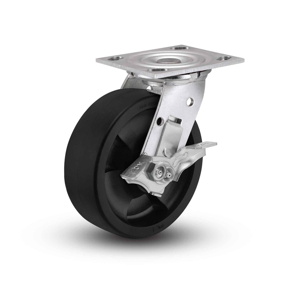 Value Stainless 8"x2" High-Temp Nylon Precision Ball Bearing Side-Lock Caster with 4"x4.5" Plate