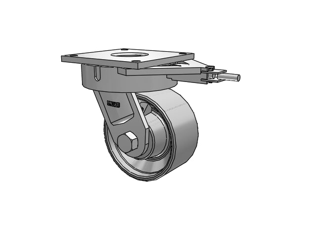 The Albion 700FS08709SL swivel caster features a 8" x 4" wide wheel and a 8 1/2" x 8 1/2" top plate, capable of a 10000 lb. capacity per caster. Complete caster specifications and downloadable CAD model are provided below. Need pure reliability in your heavy-duty application? These super-duty casters are built specifically for that potentially punishing application where reliability is essential. This one-piece forging is precision machined and carefully constructed to deliver the utmost durability in handling shock and impact. Typical applications include: aircraft engine stands, ground support equipment, aerospace A-frame skin, dollies, portable jigs, tooling fixtures, die carts, and large work platforms.