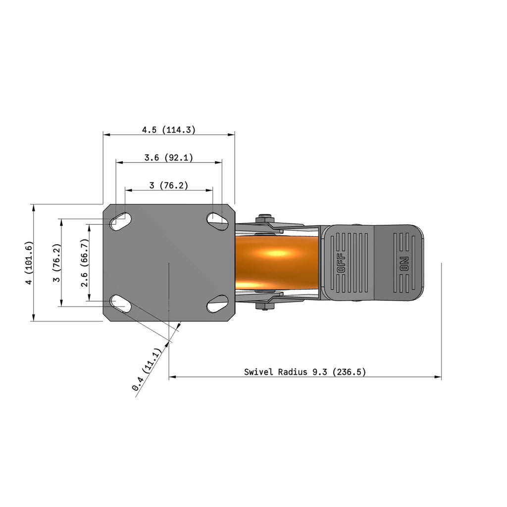This 8" ergonomic heavy-duty swivel caster is engineered to deliver lasting performance in demanding industrial environments. Featuring an exclusive USA-made kingpinless rig with an extended lead, advanced orange MAX-Efficiency polyurethane wheel, and face brake – it helps reduce operator strain and improve safety when moving heavy carts and equipment.