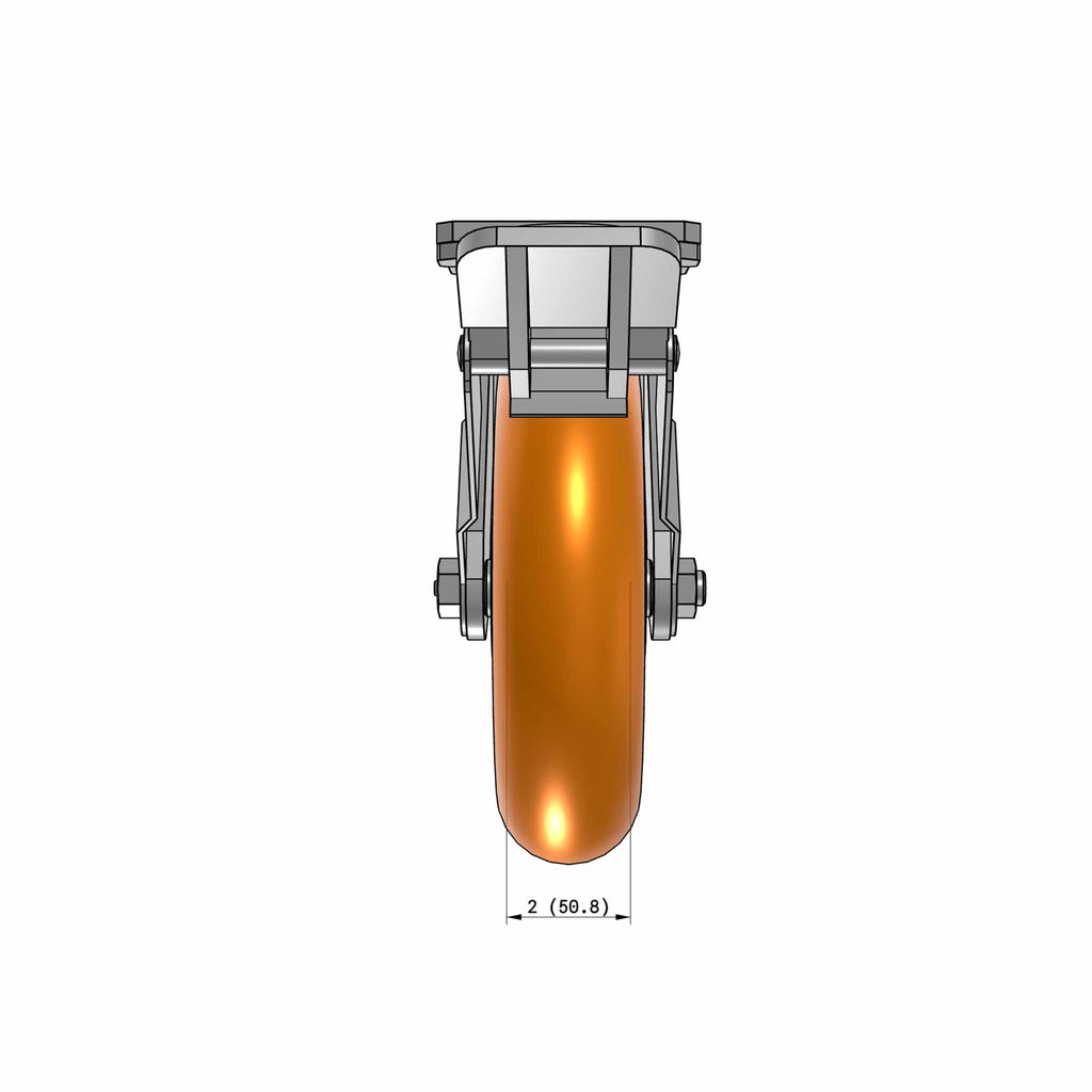 8"x2" Ergonomic Caster 9.5 OAH – USA Kingpinless Rig, MAX-Efficiency Orange Poly Wheel, Face Brake, Swivel Lock