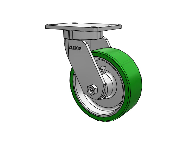 The Albion 470PE08501S swivel caster is built for tough industrial use, featuring a kingpinless rig that handles shock and impact far better than traditional kingpin casters. With a 2,500 lb. dynamic load rating per caster, this design ensures smooth swiveling, durability, and longer service life.
