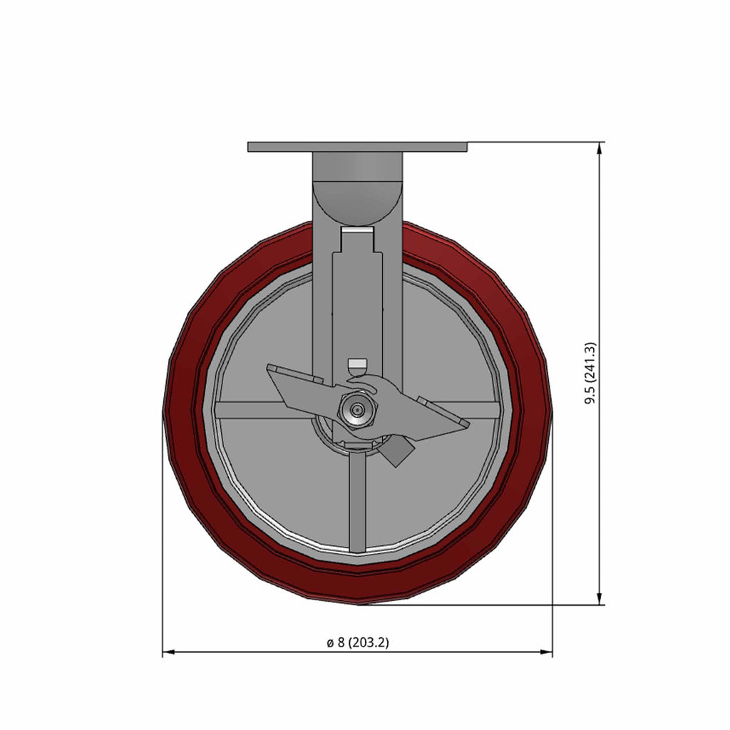The Pemco ER8X2TUMBTBK rigid caster with Side Locking brake features a 8" x 2" Thermo-Urethane wheel and a 4" x 4-1/2" Top Plate, capable of a 800 lb. capacity per caster. Complete caster specifications and downloadable CAD model are provided below. The E-line is an economical lineup of 2” wide wheel casters with 4” x 4.5” top plates designed and mass-produced for a range of medium-duty applications with load requirements ranging from 300 to 1,250 lbs. per caster. Although economical, many of our wheels are also USA-made, including our Thermo-Rubber (flat and donut), Thermo-Urethane, Phenolic, and Polypropylene HD wheels. From shop carts and containers to platform and lumber carts, the E-Line is your most competitive and in-stock 2" wide solution. If you have large or OEM usage, please contact us for the most competitive price and delivery options—we can produce and deliver large volumes quickly and reliably.