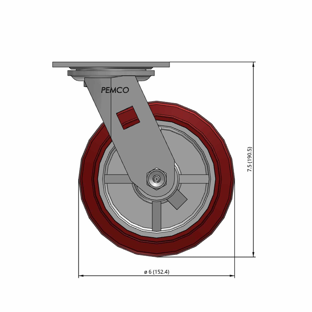 The Pemco ES6X2TUMB swivel caster features a 6" x 2" Thermo-Urethane wheel and a 4" x 4-1/2" Top Plate, capable of a 720 lb. capacity per caster. Complete caster specifications and downloadable CAD model are provided below. The E-line is an economical lineup of 2” wide wheel casters with 4” x 4.5” top plates designed and mass-produced for a range of medium-duty applications with load requirements ranging from 300 to 1,250 lbs. per caster. Although economical, many of our wheels are also USA-made, including our Thermo-Rubber (flat and donut), Thermo-Urethane, Phenolic, and Polypropylene HD wheels. From shop carts and containers to platform and lumber carts, the E-Line is your most competitive and in-stock 2" wide solution. If you have large or OEM usage, please contact us for the most competitive price and delivery options—we can produce and deliver large volumes quickly and reliably.
