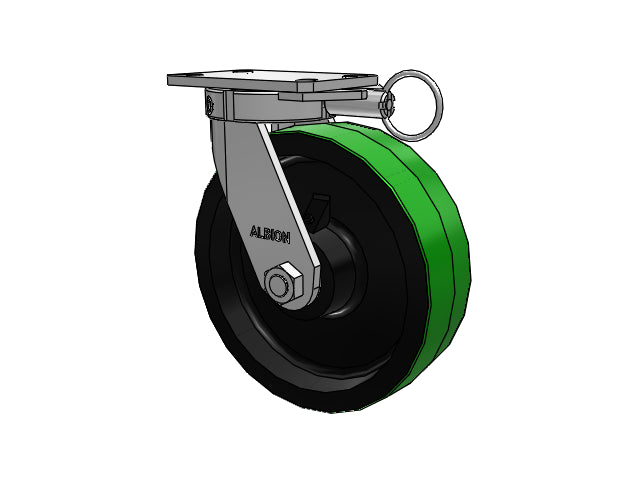 Kingpinless 10"x3" Green Poly-on-Iron Caster with 6.25"x4.5" Plate & Swivel Lock