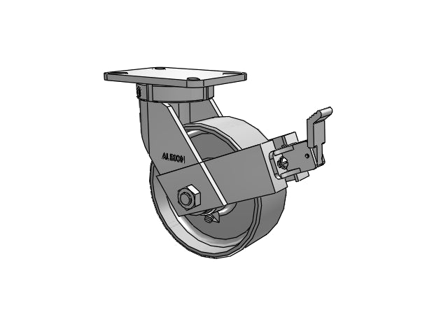 The Albion 410FS08501SFBB swivel caster with Top Wheel Lock brake features a 8" x 3" wide wheel and a 7-1/4'' x 5-1/4'' top plate, capable of a 4500 lb. capacity per caster. Complete caster specifications and downloadable CAD model are provided below. This USA-made series is a 3” wide-wheel workhorse designed to handle shock and impact. Constructed from high-quality, heat-treated AISI 1045 laser-cut steel, this series provides trusted performance. Precision machined raceway, fully welded legs (inside and outside), and kingpinless design delivers superior strength in rugged applications. This series also supports towed applications, contact us prior to ordering to ensure your selection meets your towing requirements.