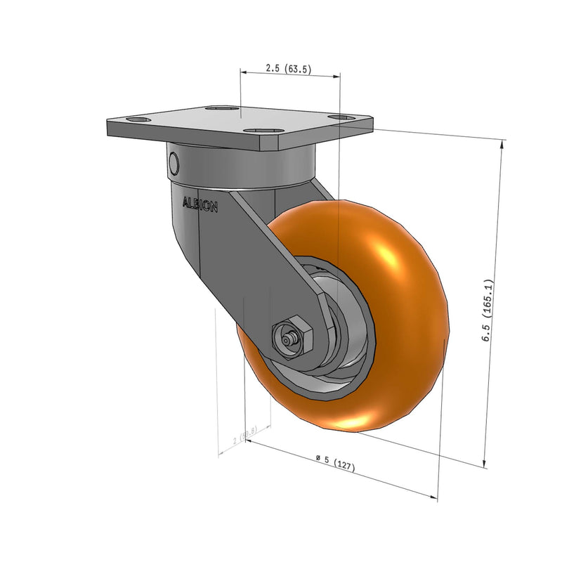 This 5" ergonomic heavy-duty swivel caster is engineered to deliver lasting performance in demanding industrial environments. Featuring an exclusive USA-made kingpinless rig with an extended lead and advanced orange MAX-Efficiency polyurethane wheel – it helps reduce operator strain and improve safety when moving heavy carts and equipment.
