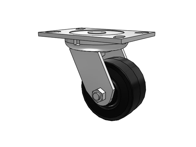 The Albion 62MR04201S swivel caster features a 4" x 2" wide wheel and a 6-1/4'' x 4-1/2'' top plate, capable of a 300 lb. capacity per caster. Complete caster specifications and downloadable CAD model are provided below. Manufactured from cold-formed steel, this popular 2” wide wheel series features a 6.25” x 4.5” top plate and heat-treated king bolt and nut, ensuring durability and a longer caster life.